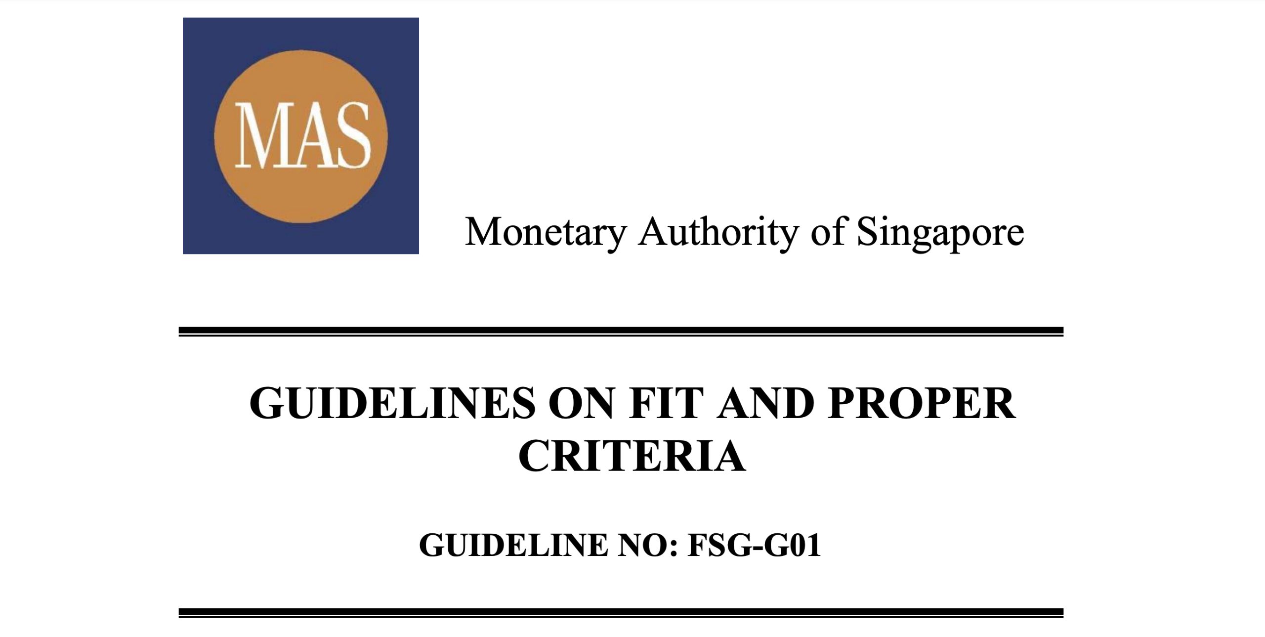 The Monetary Authority of Singapore (MAS) defines whether a person is suitable to carry out regulated activities.